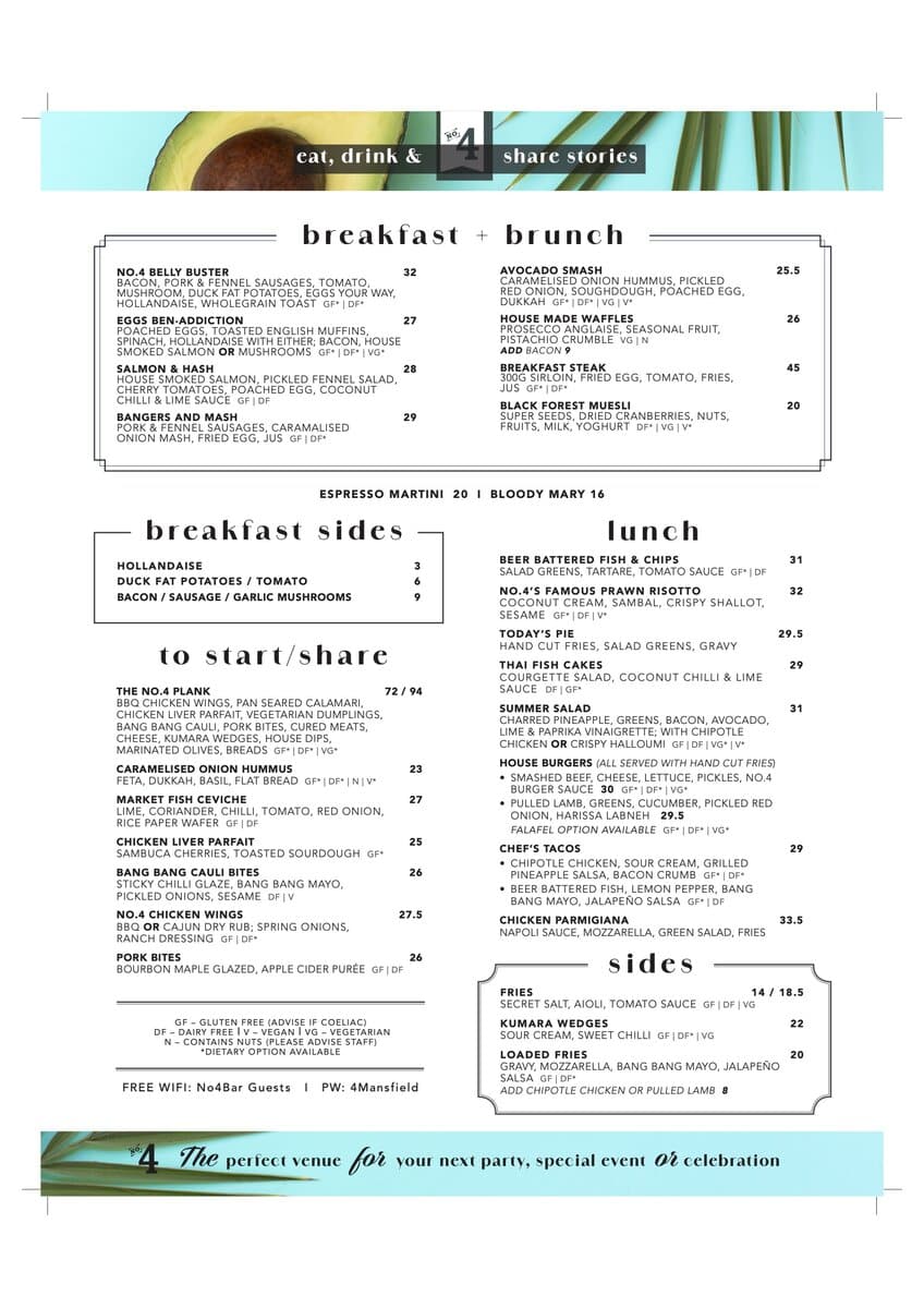 Great food. Exceptional service which catered to my multiple food allergies. Warm atmosphere. I would highly recommend No 4!More