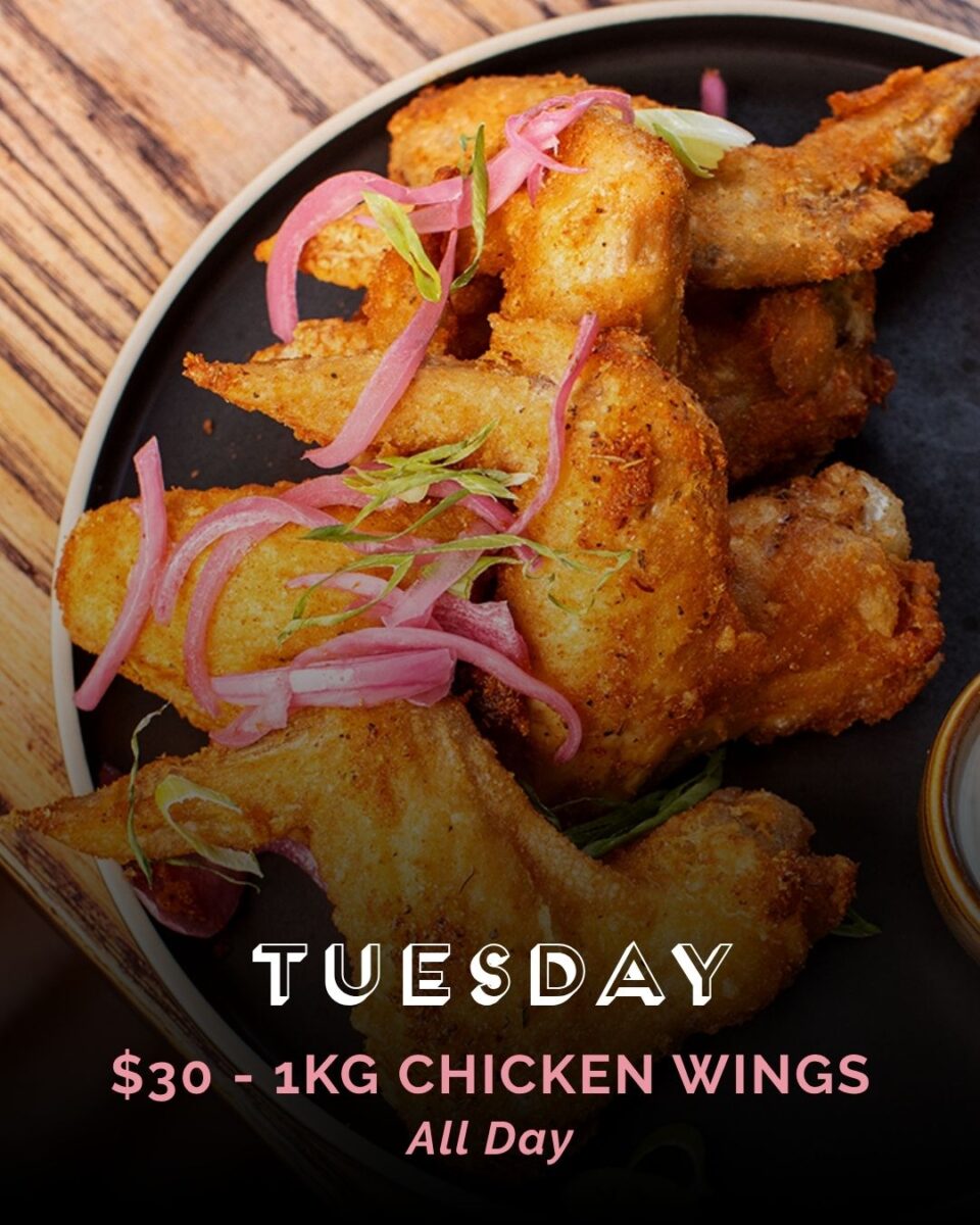 BBQ chicken wings, pan seared calamari, chicken liver parfait, Korean dumplings, bang bang cauli, pork bites, cured meats, cheese, kumara wedges, house dips, marinated olives, bread